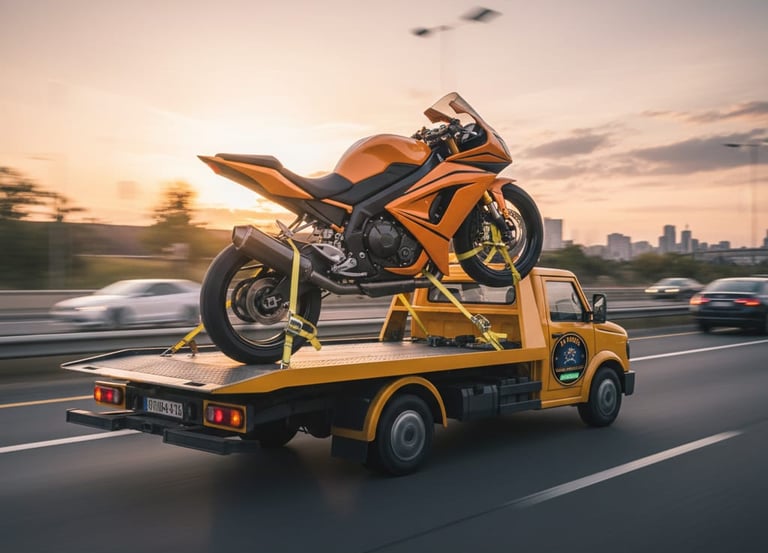 🏍️ Motorcycle-Specific Equipment – Specialized tow trucks and straps designed for bikes.